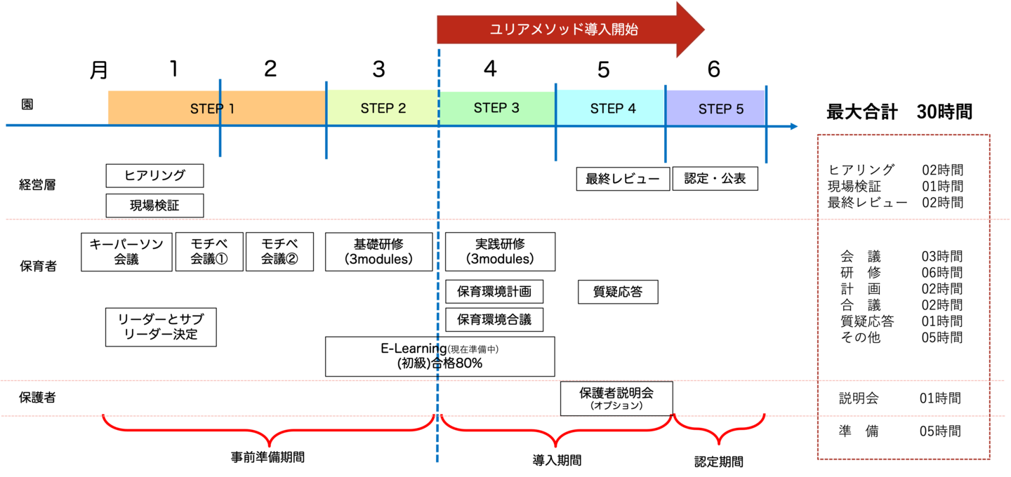 最大6ヶ月という期間の中で、大きく5つのステップに段階分けをして進めます。